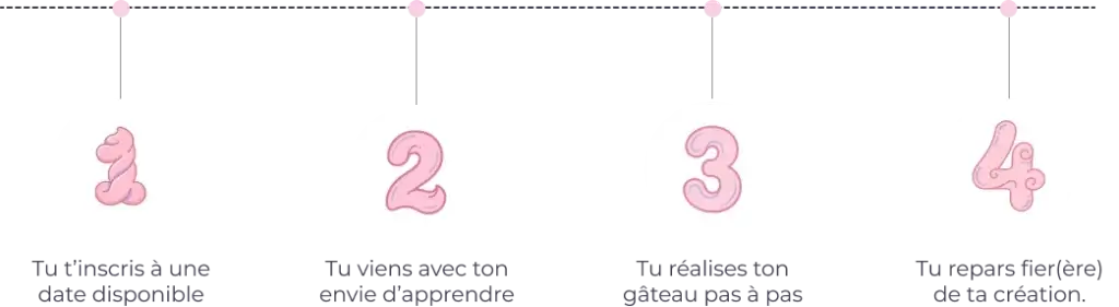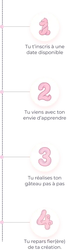 Pendant l’atelier, tu réalises entièrement ton gâteau. Je t’explique les gestes, les techniques, les erreurs à éviter.